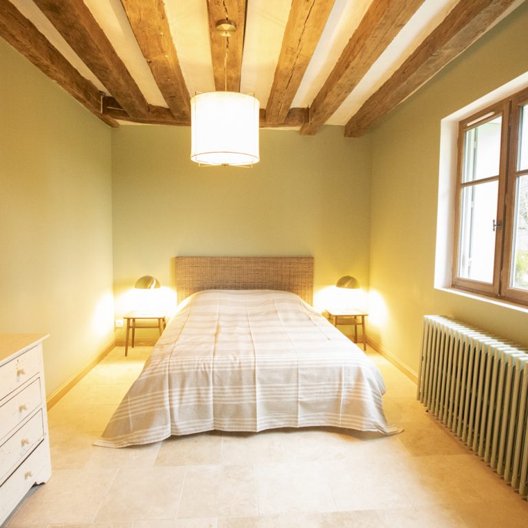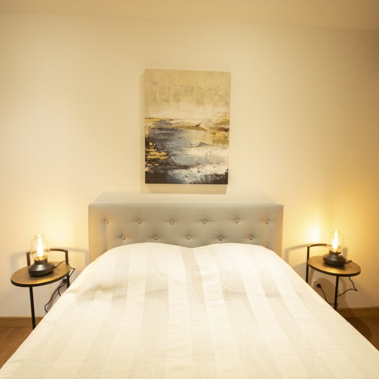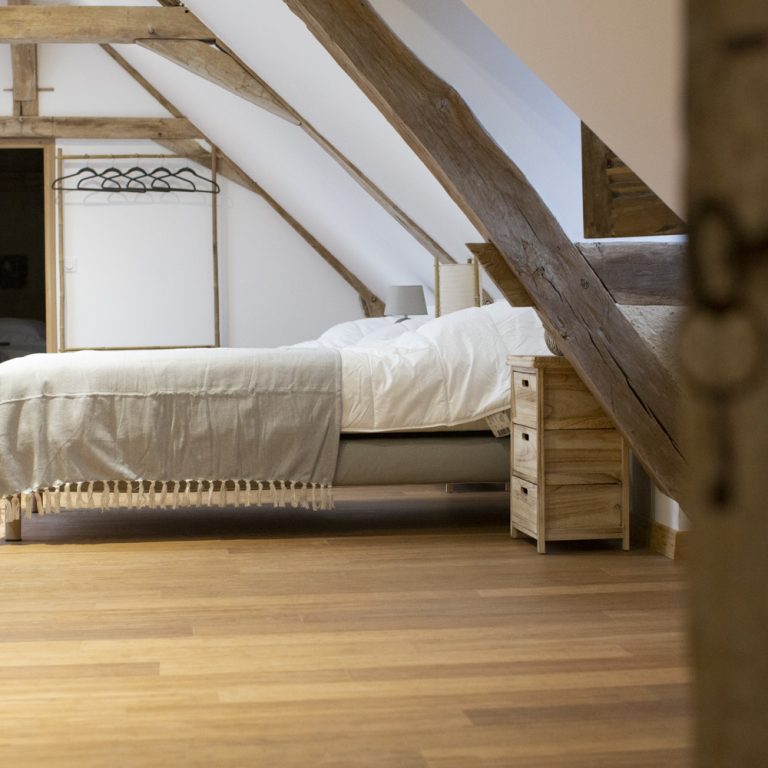 Vous trouverez au rez-de-chaussée une chambre chaleureuse avec un lit double. Le linge de lit est compris dans votre réservation.