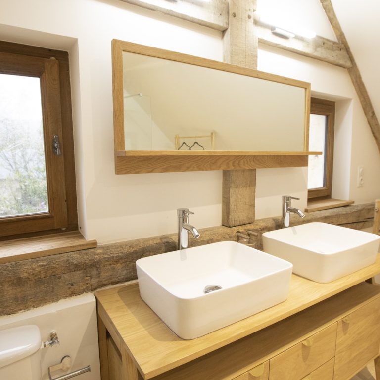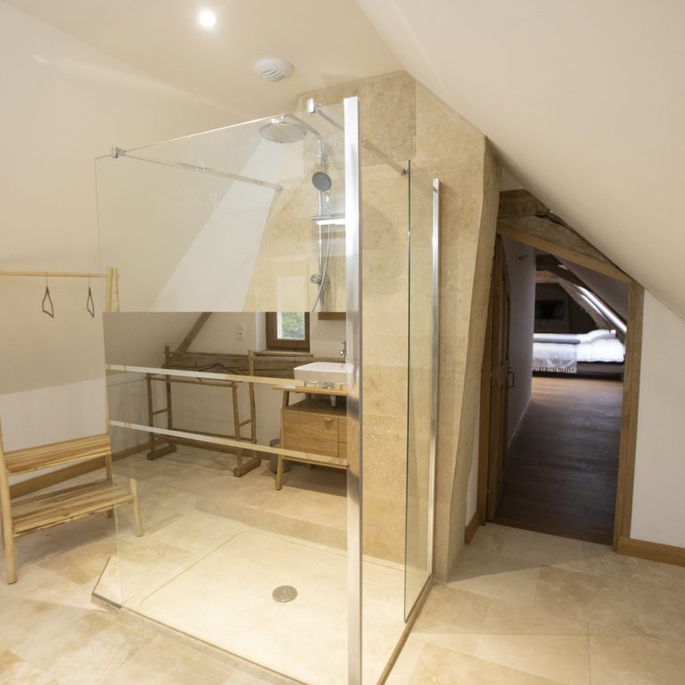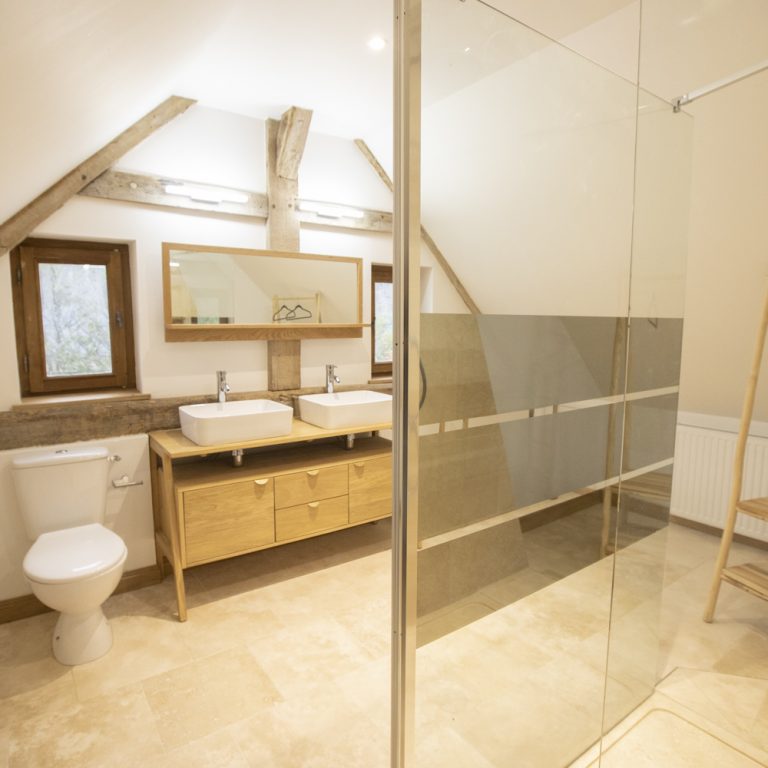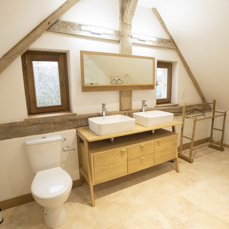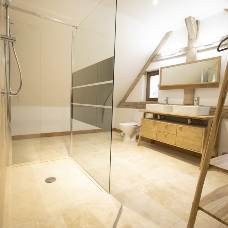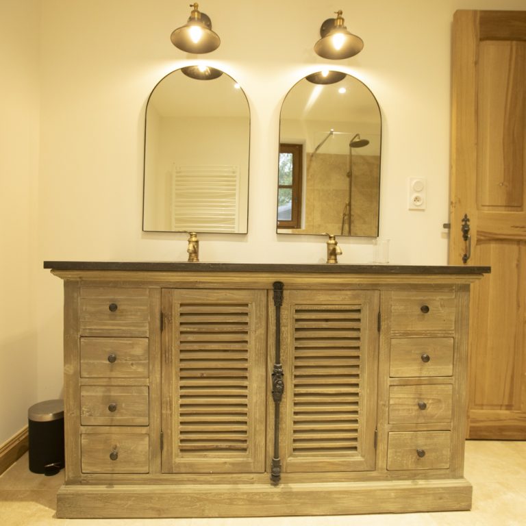 Deux salles de douche avec double vasques décorées avec goût, seront à votre disposition dans ce gite. Une au rez-de-chaussée et une à l’étage. Le linge de toilette est compris dans votre réservation.
