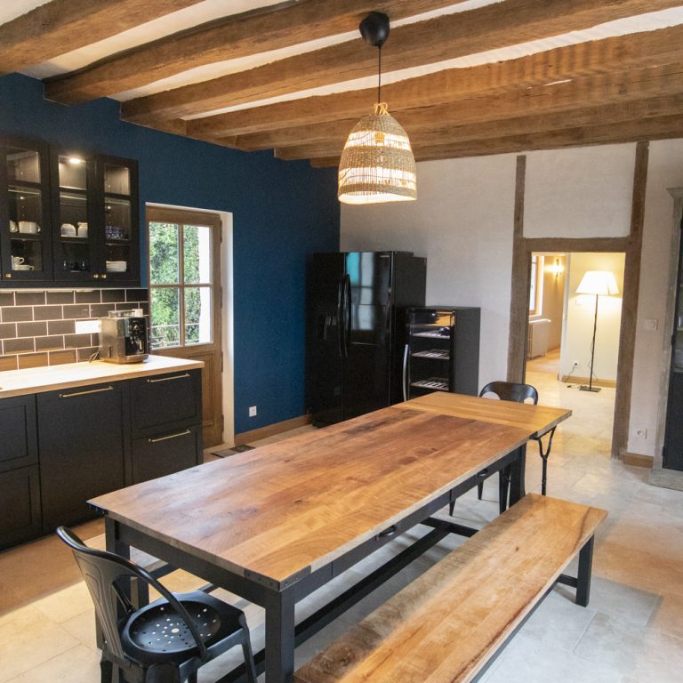 Equipée d’un réfrigérateur avec distributeur d’eau & glaçons, d’une cave à vin, d’une cafetière à grain, d’un lave vaisselle, d’un micro-ondes, d’une gazinière avec four, et de toute la vaisselle nécessaire à votre séjour, vous n’aurez plus d’excuses pour éviter les fourneaux !